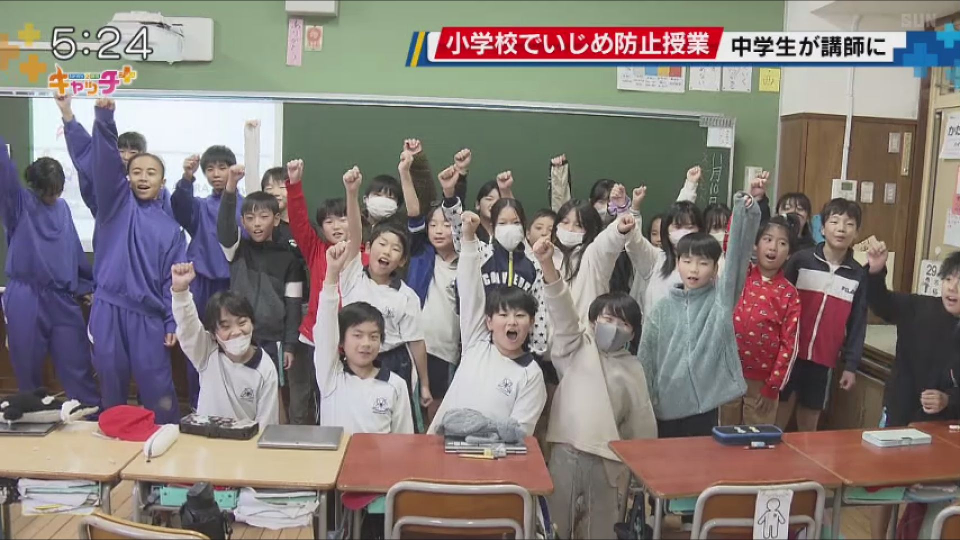 子どもたちがいじめ防止考える授業 中学生が小学生の講師に