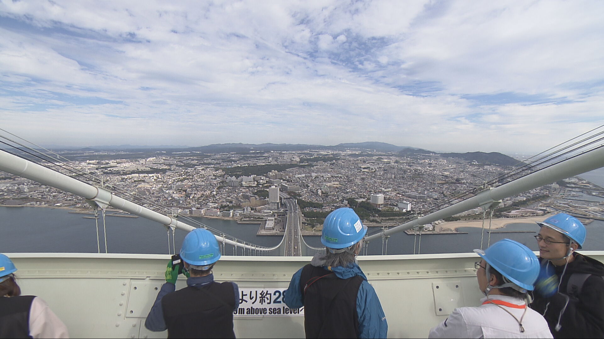 世界最大級のつり橋・明石海峡大橋の主塔の最上部から高さ300メートルの絶景を「鳥の目」で楽しむ特別なツアーが行われました。