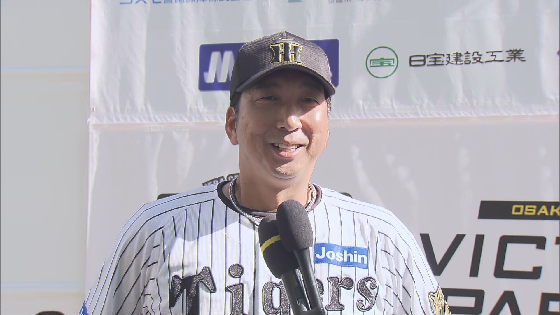 「阪神タイガースはすごいなと。ファンの熱気と毎日頑張って良かったと思った。何のために頑張っているのか考える時もあった。きょうのためでした。素晴らしかった。来年必ず連覇をできるように頑張るのでファンもついてきてほしい」