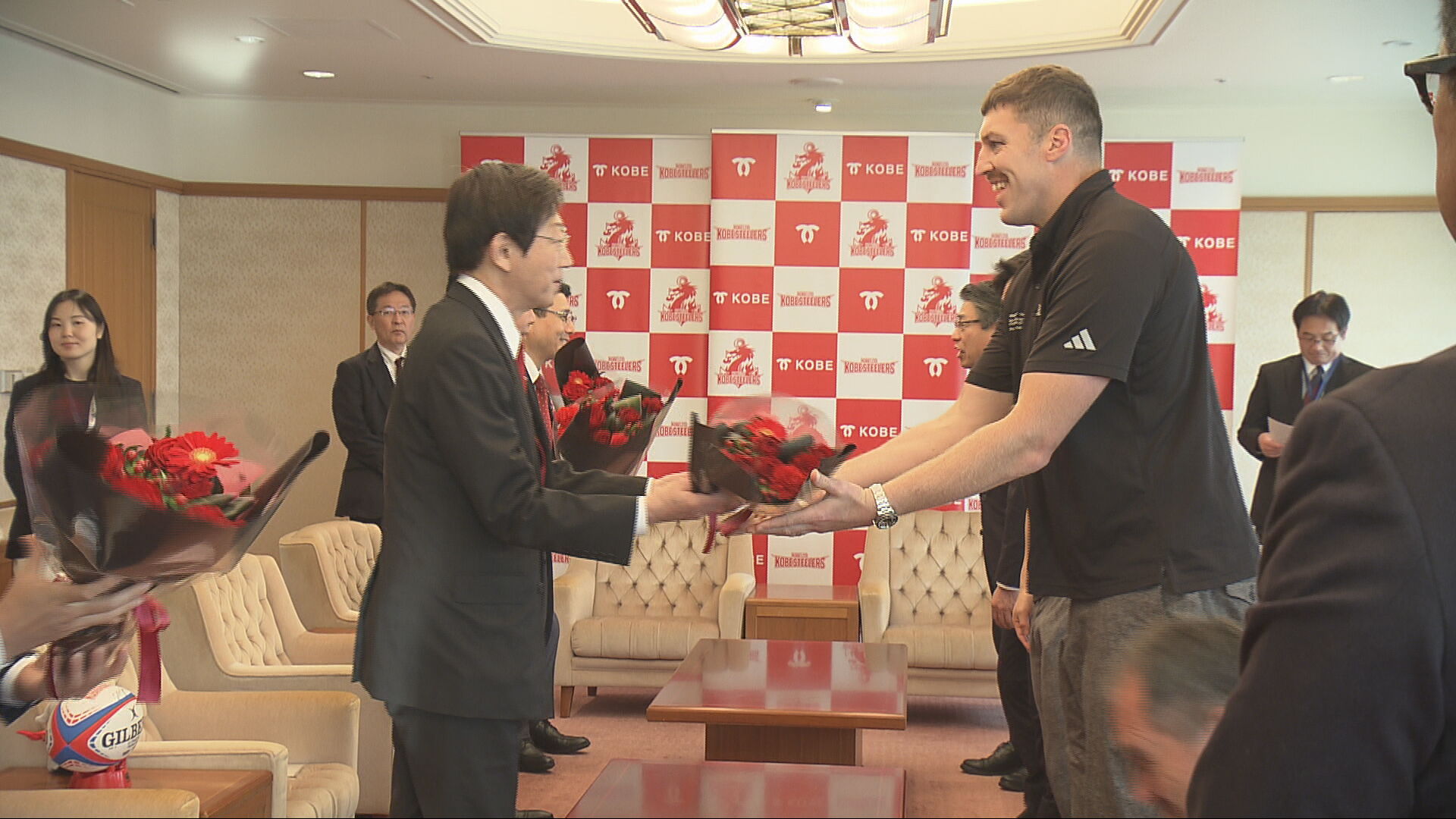 ラグビー・リーグワン1部の開幕を前に、コベルコ神戸スティーラーズの選手が、神戸市の久元市長を表敬訪問し活躍を誓いました。