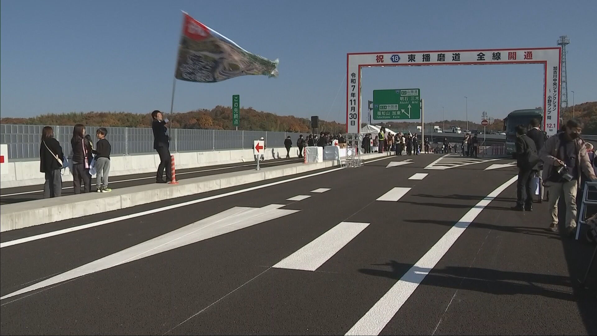 加古川市と小野市を結ぶ、無料の自動車専用道路「東播磨道」が30日、全線開通し記念のセレモニーが開かれました。