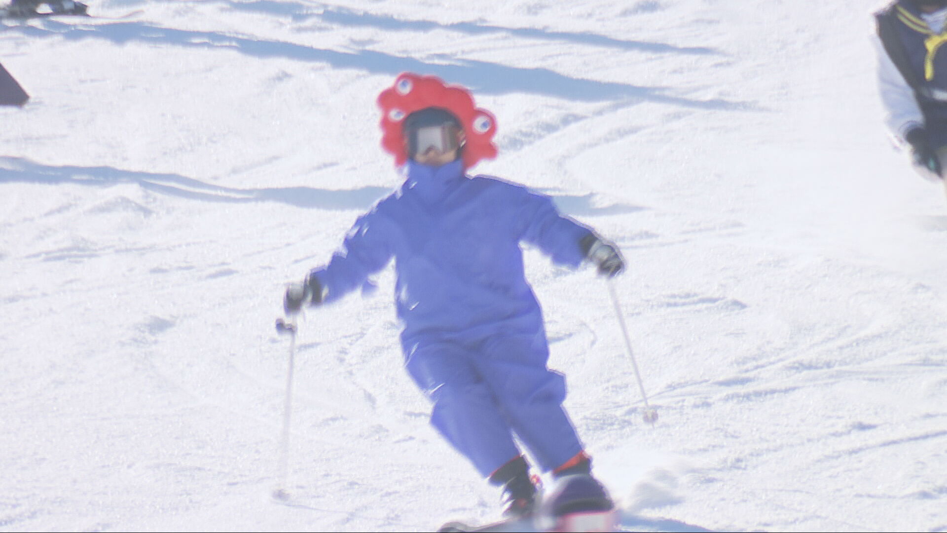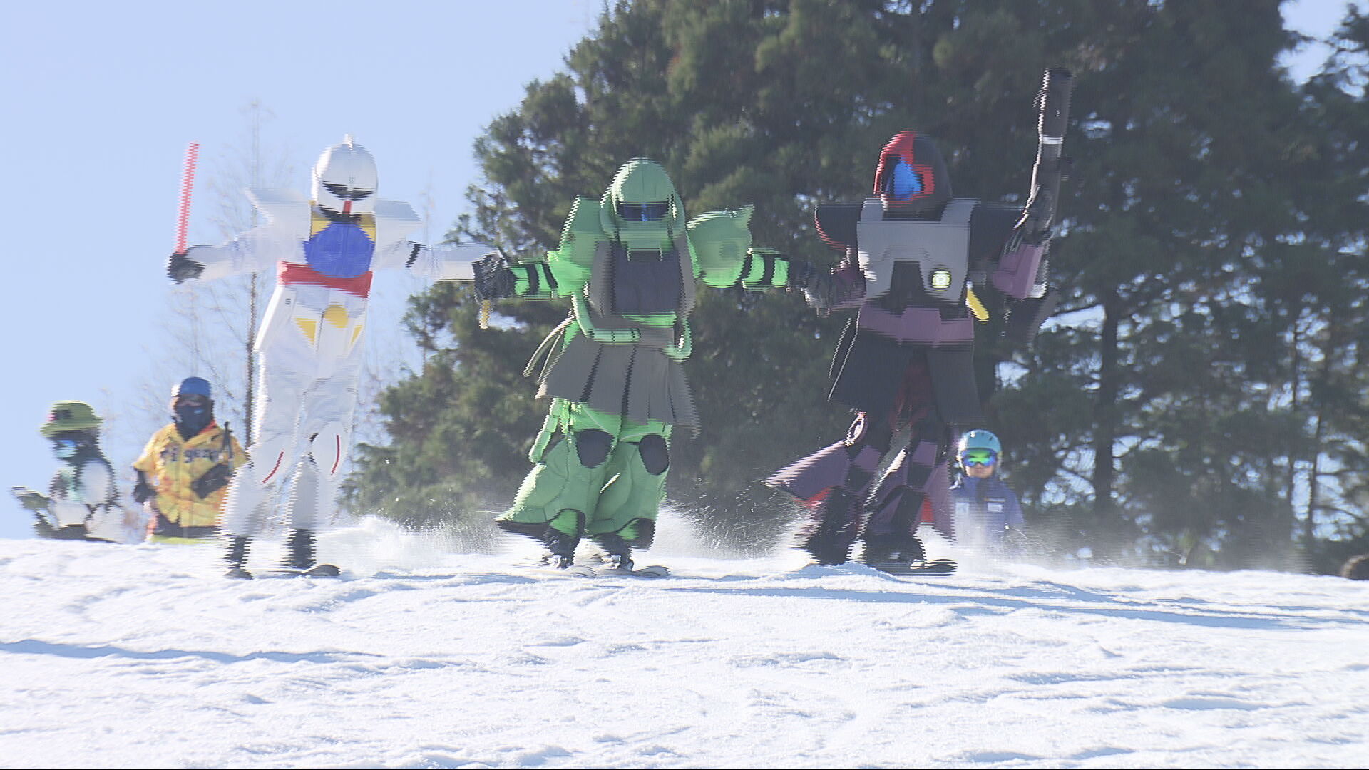 中には、ことし盛り上がりを見せた、大阪・関西万博のマスコットキャラクター「ミャクミャク」に扮した人などもみられ、白銀の世界を颯爽と滑っていました。