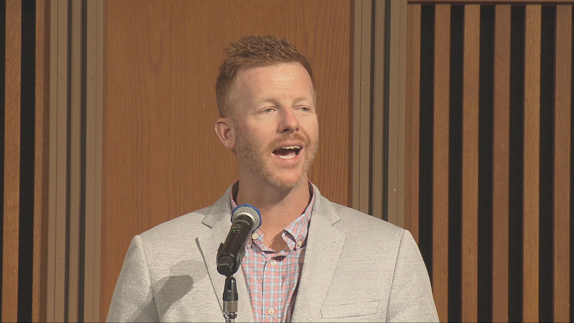 約350人の聴衆の拍手を受けて登壇したのは、元阪神タイガースのマット・マートンさんです。