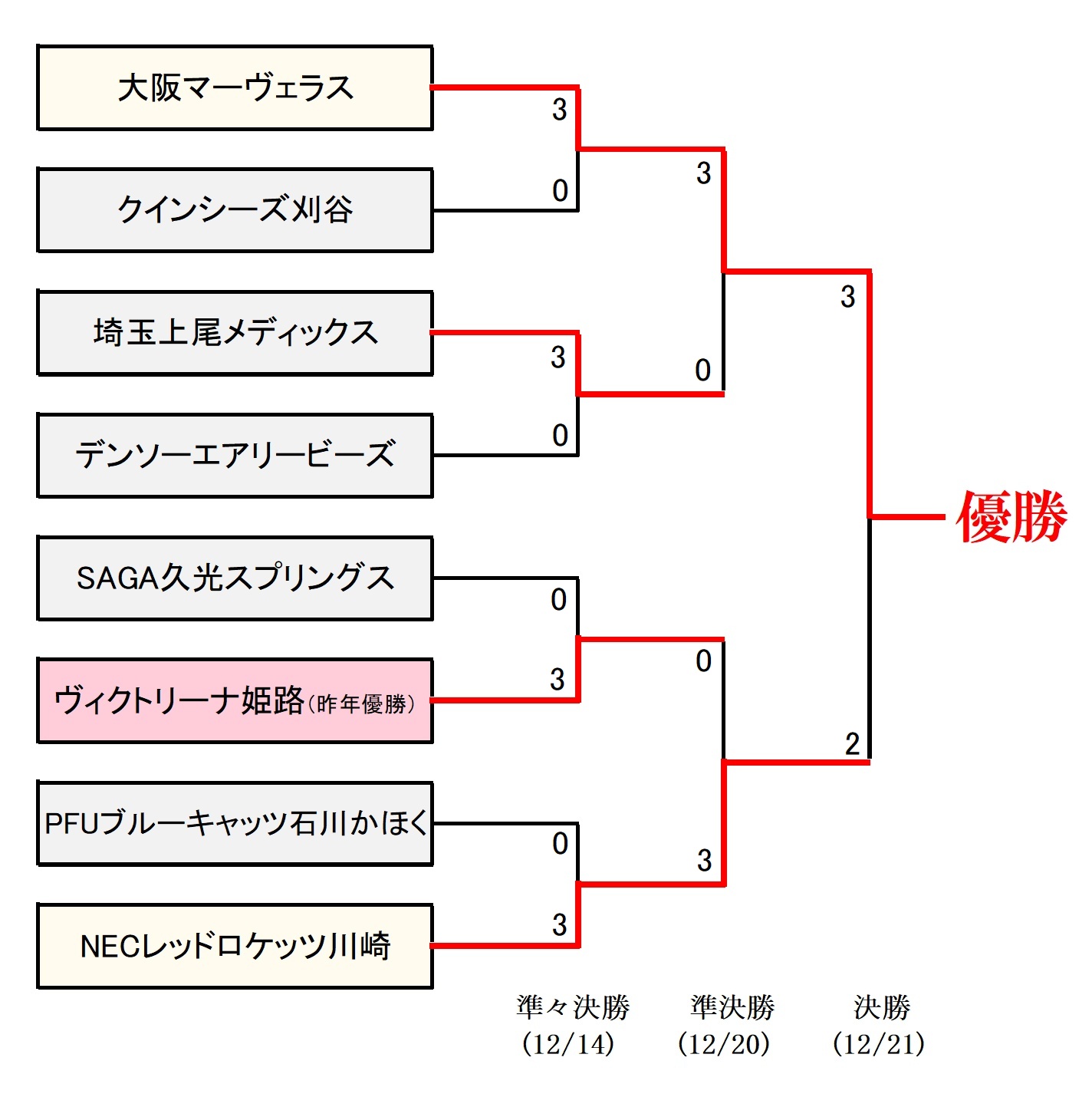 このあと年明けの1月3・4日には、ヴィクトリーナ・ウインク体育館に皇后杯チャンピオン・大阪マーヴェラスを迎えて戦う(両日とも14時5分開始)。