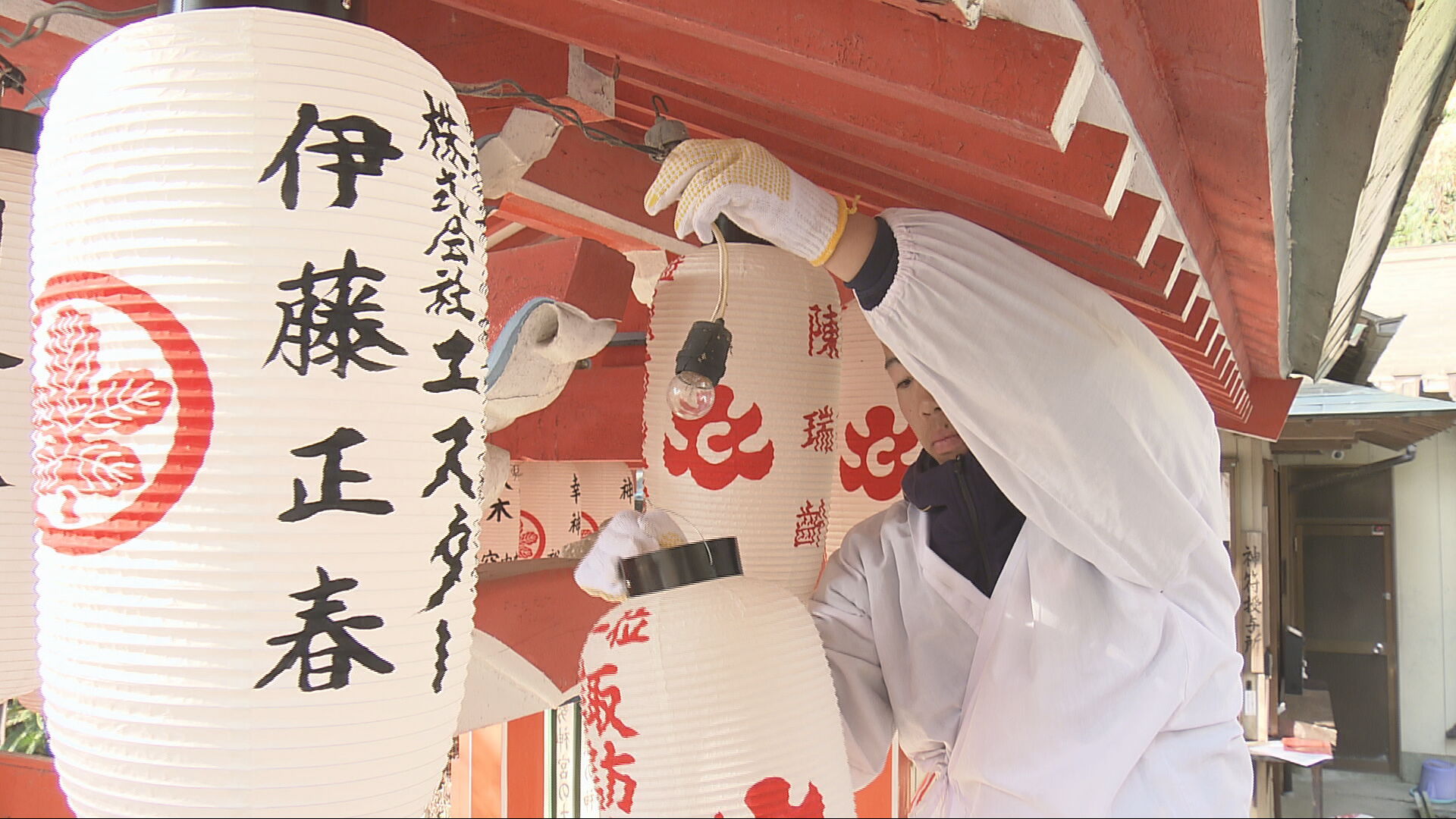 神戸市中央区の諏訪神社で、新年を前にちょうちんを新しいものに付け替える、恒例の「ちょうちん奉納」が行われました。
