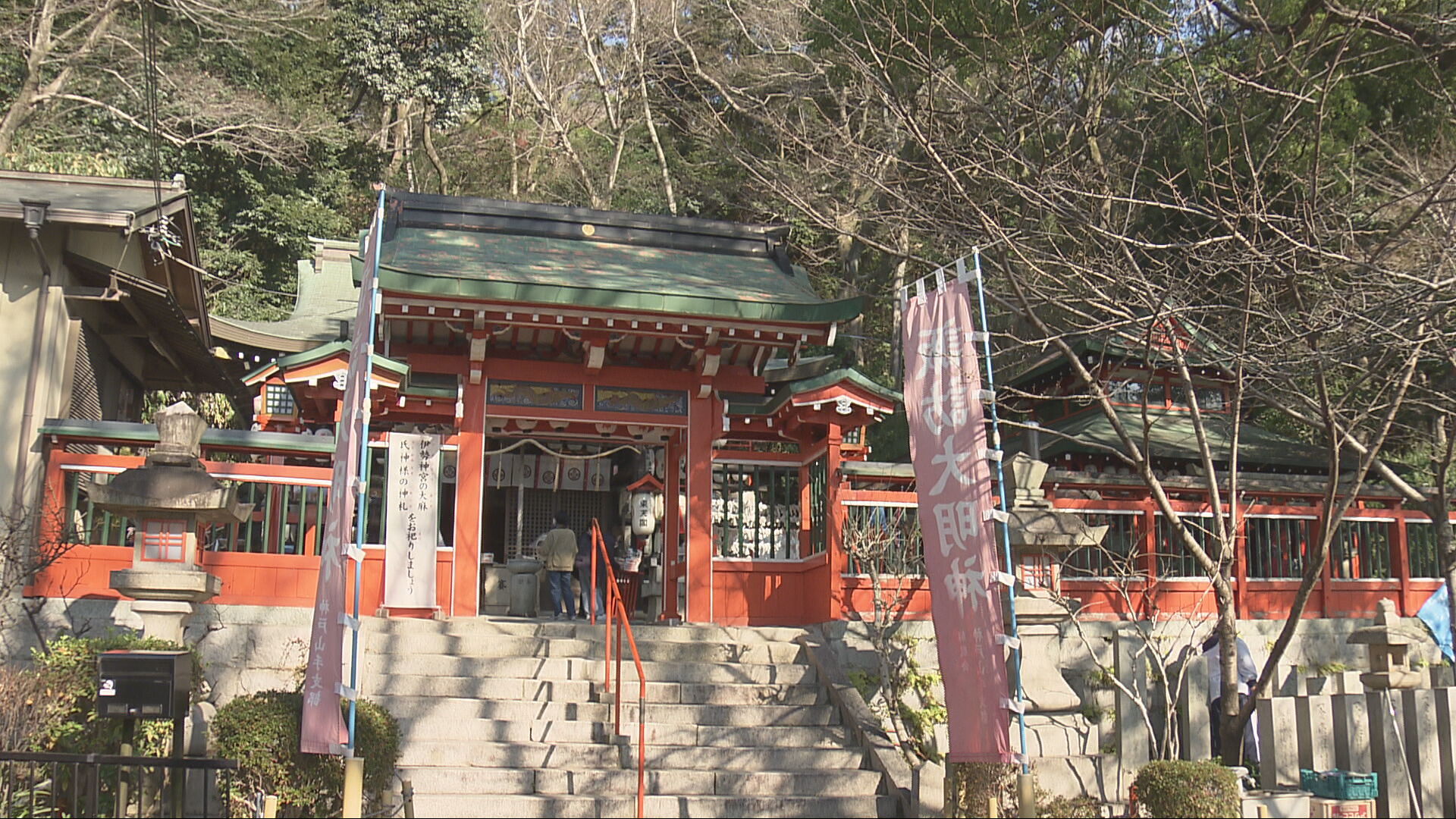 近くにある神港学園高校の硬式野球部の部員が、トレーニングとして参道の上り坂で走り込み、鍛えている縁から毎年、付け替えを手伝っています。