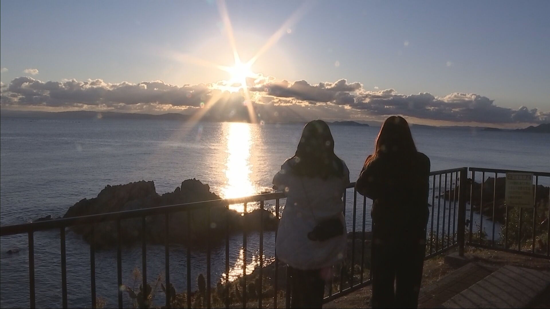 国道28号線の海岸沿いには、地元の人や神戸や大阪など島外から訪れた人が初日の出を撮影していました。