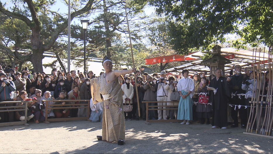 悪霊を払うとされる鏑矢が放たれると、境内から歓声が上がりました。