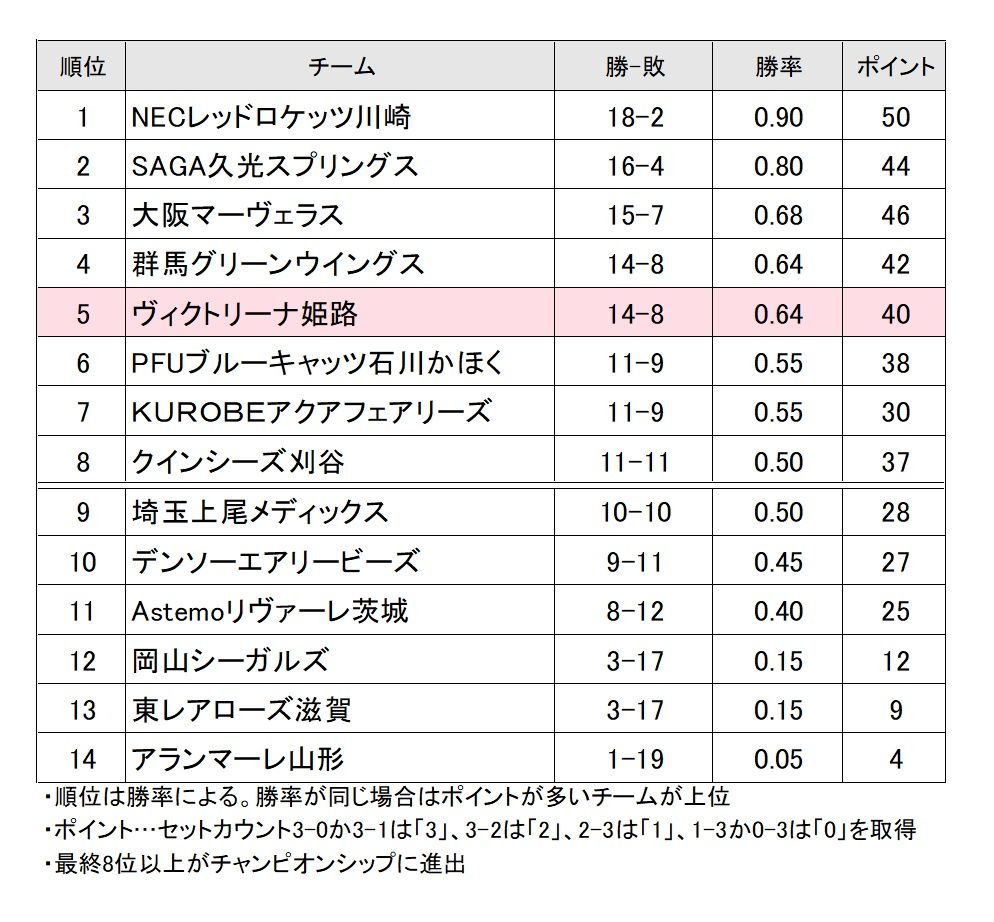SVリーグ女子 順位表