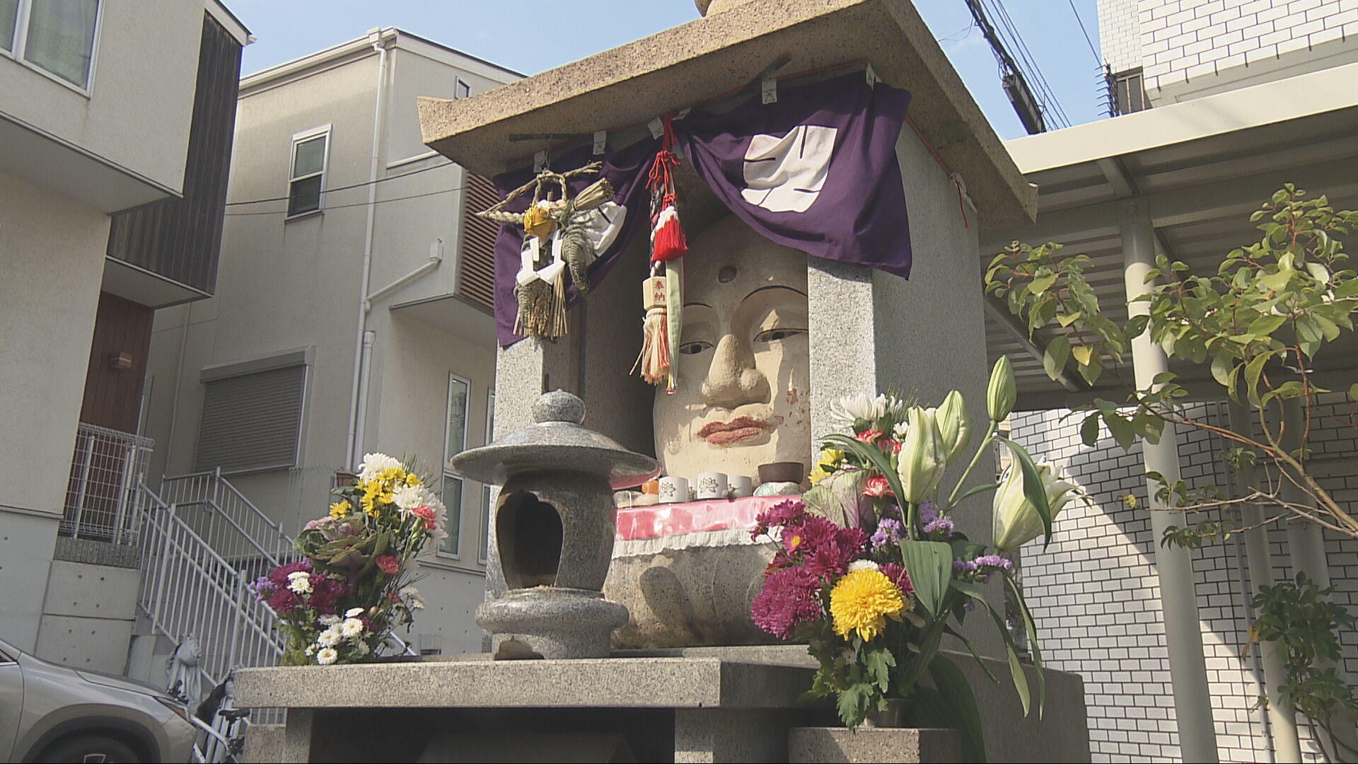 兵庫県神戸市東灘区の住宅街にたたずむ「くび地蔵」。