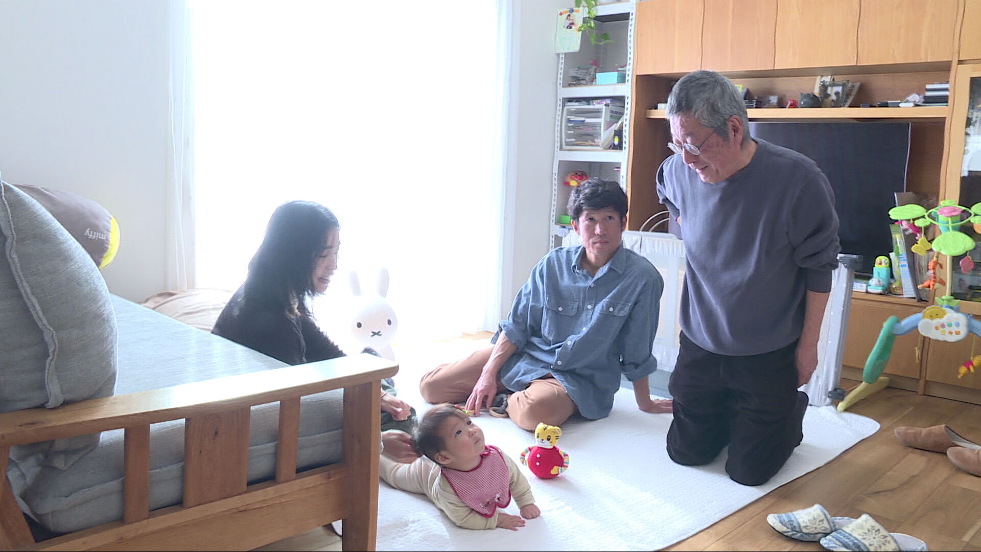 息子家族と団らんする博也さん