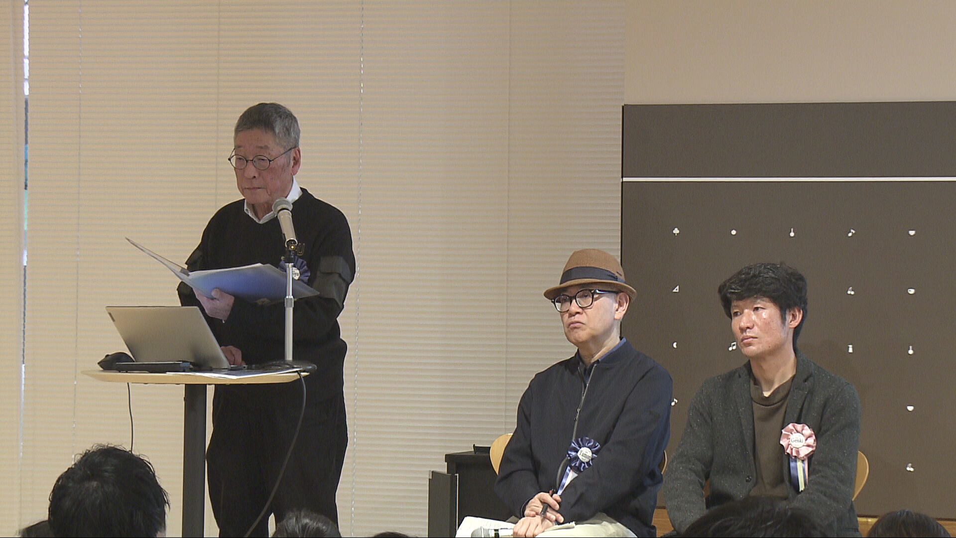 元気さんが話す原稿を読む博也さん