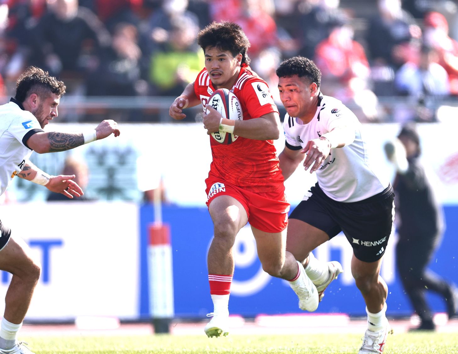 先発出場が予告されていたフルバックの松永寛汰に代わって、2年目の伊藤大祐(早大出身)が今シーズン初出場し、ランやパスで好プレーを見せた。