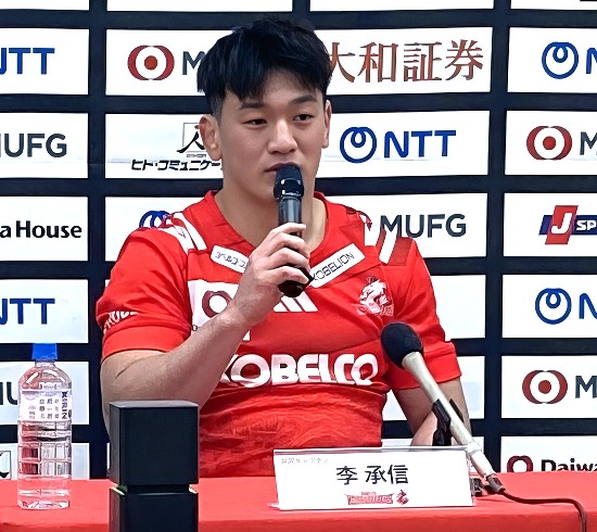 1月17日の試合に勝利できたことについて、神戸市出身で共同キャプテンの李承信(リ・スンシン)は試合後の記者会見で、