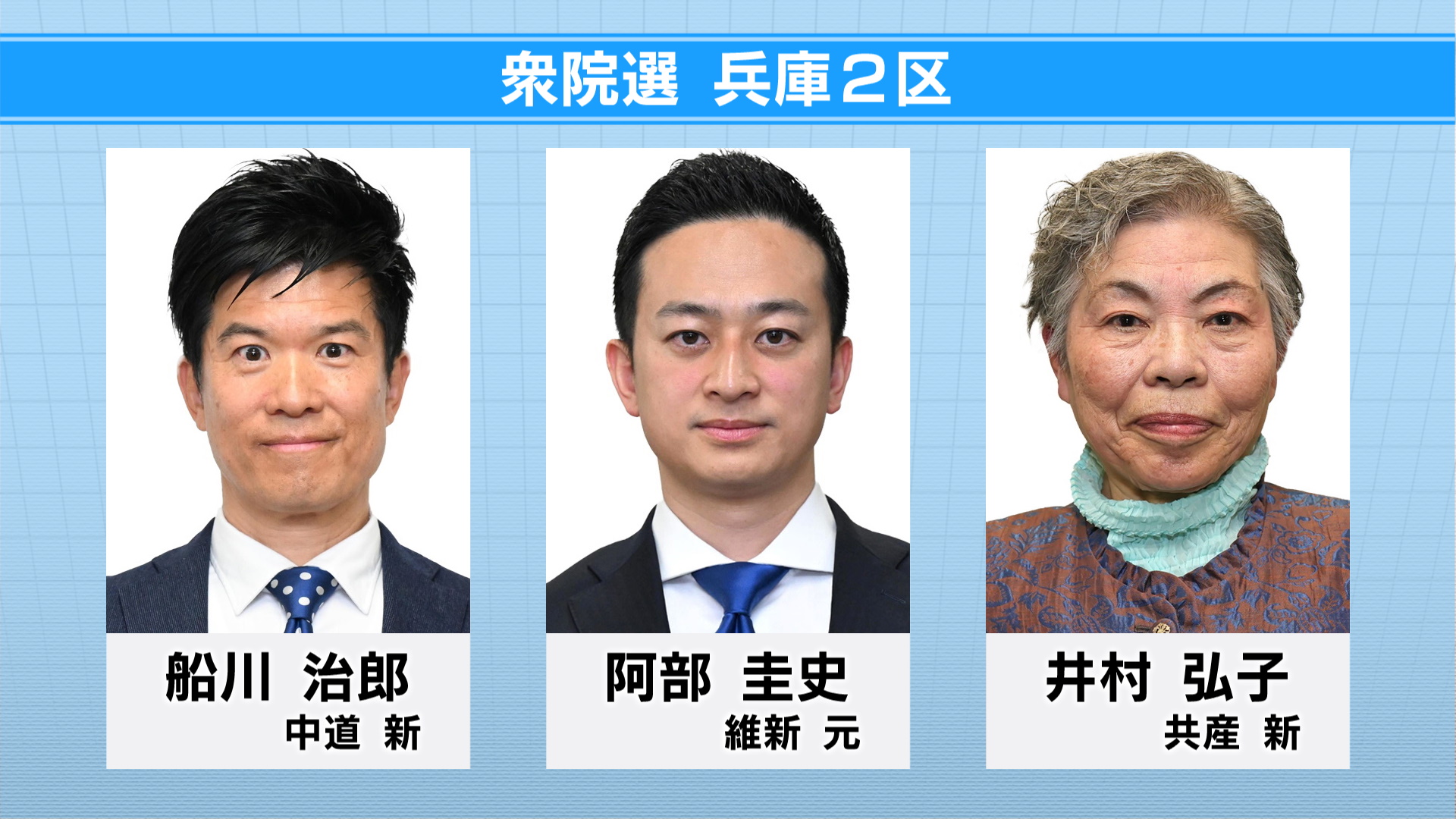 兵庫2区にはこの他、中道改革連合の船川治郎氏、日本維新の会の阿部圭史氏、共産党の井村弘子氏の3人が立候補を予定しています。