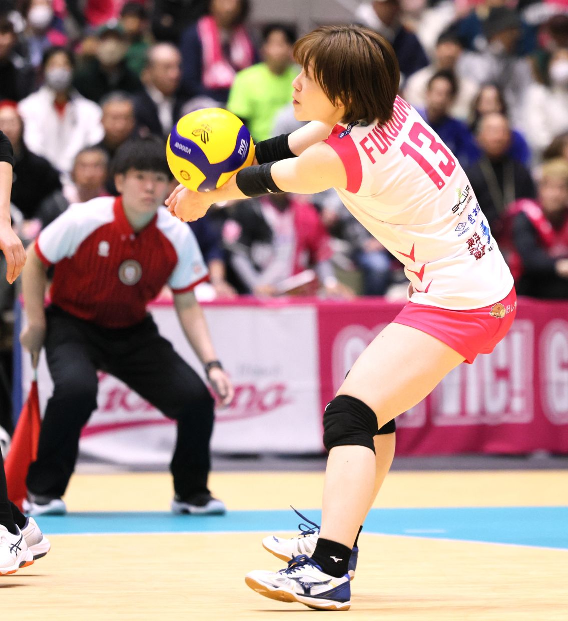 第3セットも19-23まで追い込まれたが、リベロ福留慧美(日本代表)を中心とした堅い守りと、カミーラのスパイクなどで猛追し、デュースに。