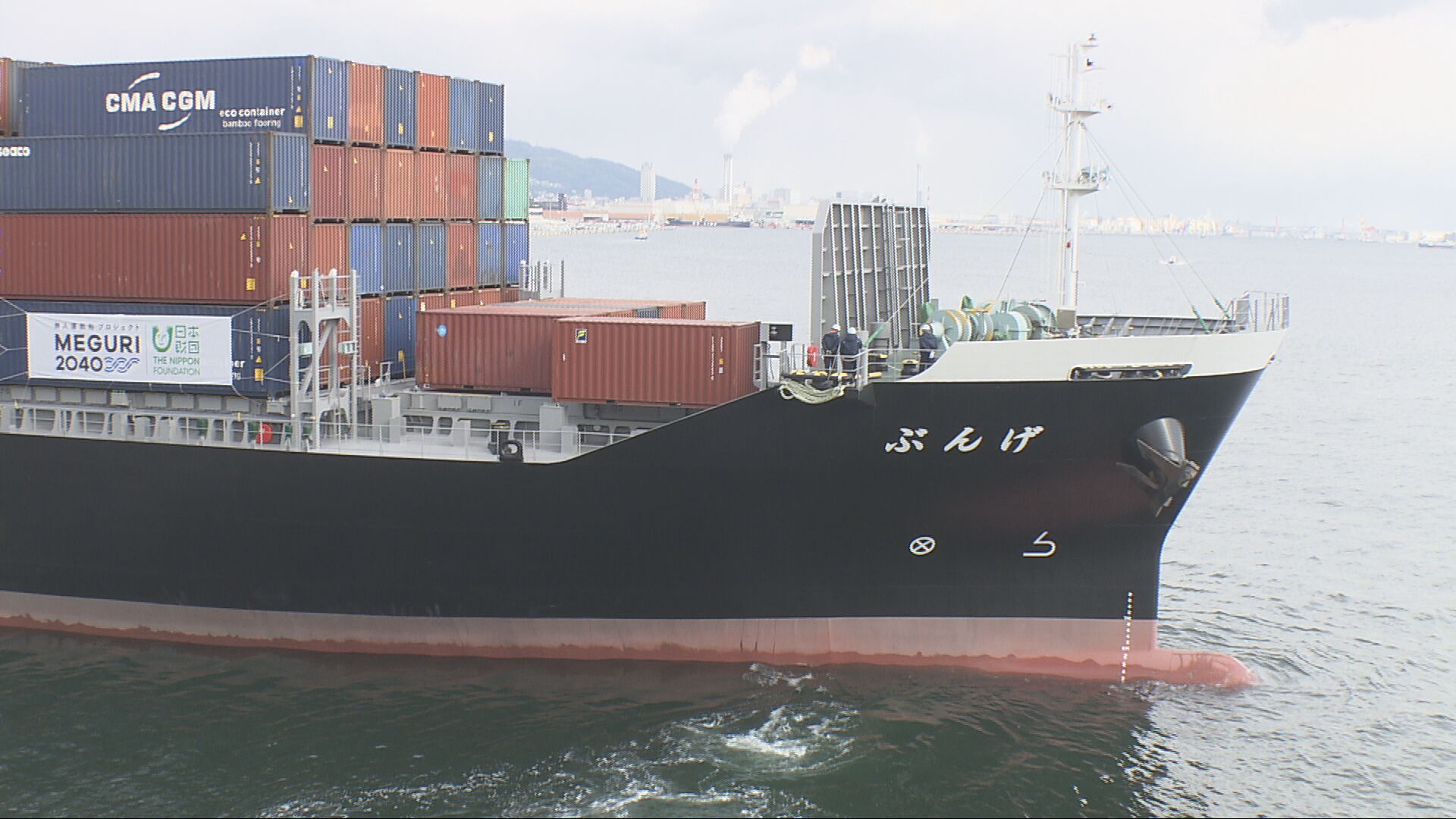 1月30日、神戸ポートターミナルに到着したのは、自動運航船として新しく建造され、国内の港を定期運航するコンテナ船「げんぶ」です。「げんぶ」は全長134・9メートルで標準的なコンテナを696個を積むことができます。