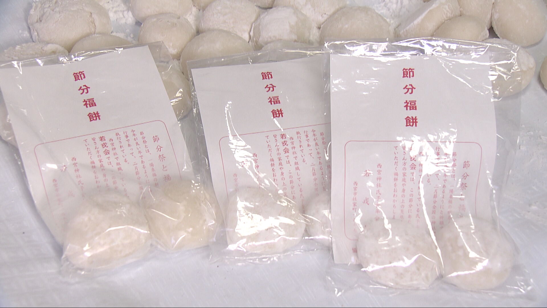 福餅は2つずつ袋詰めされ、2月3日午前10時からの節分祭(せつぶんさい)に参列した人などに無料で配布されます。