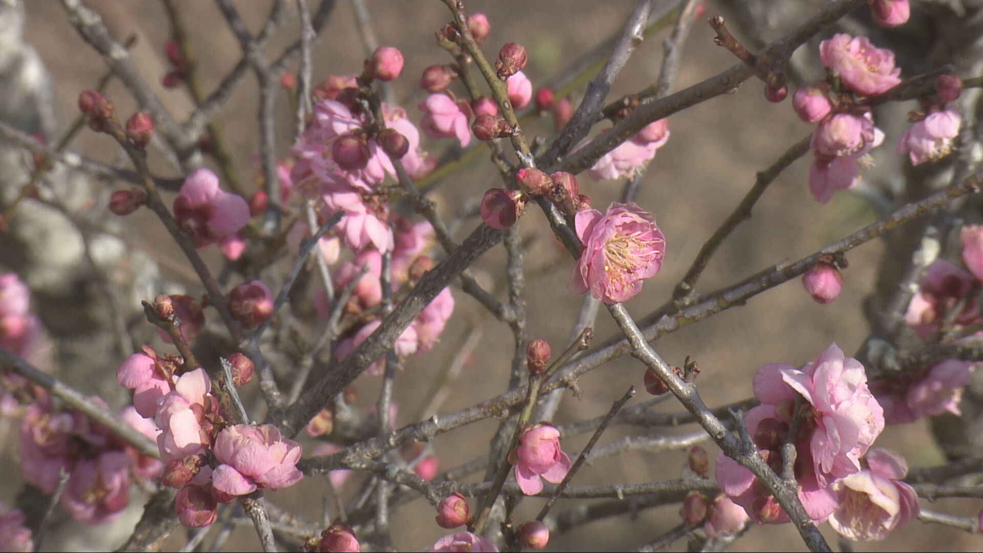 園内では、早咲きのウメから順に開花が進み、2月中旬には園内全体で見頃を迎えるということです。
