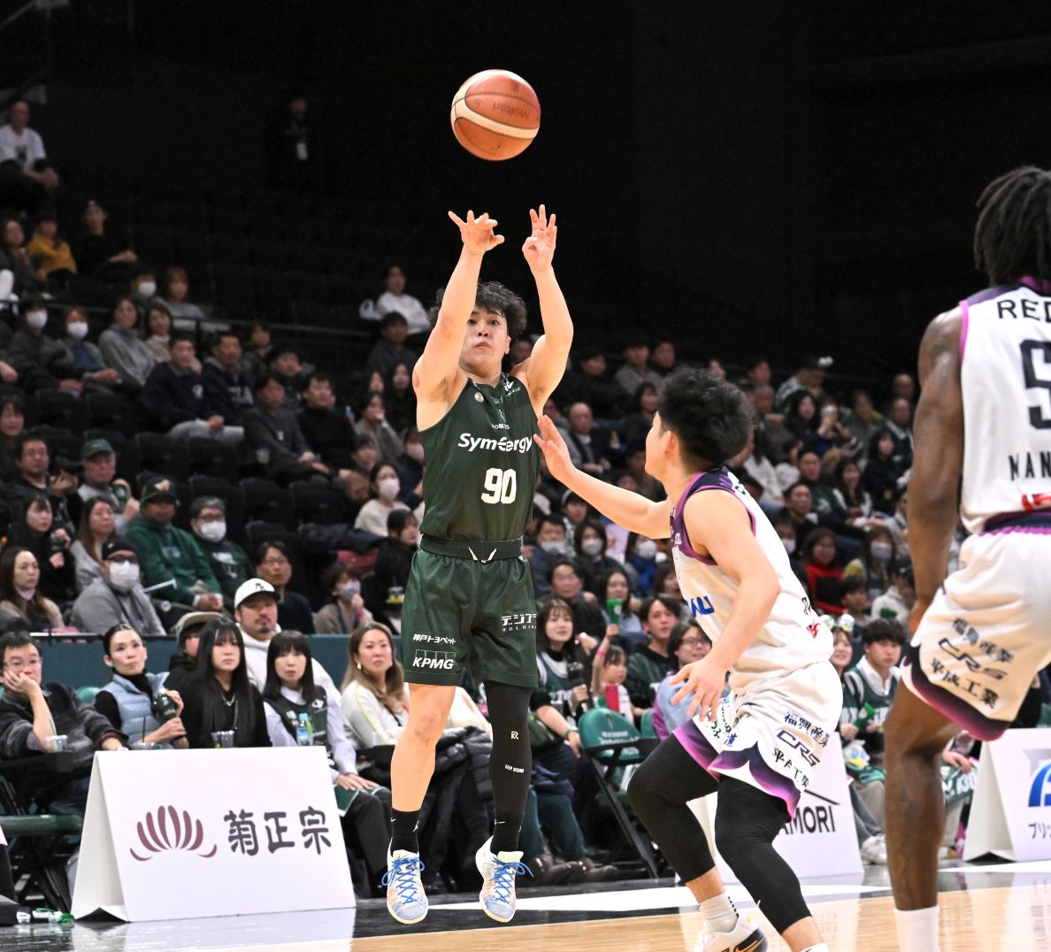 チーム加入6試合目のルーク・メイが相手ボールをスティールしてシュートを決め、21-19と2戦通して初めて福島に先行すると、野溝利一の連続3Pシュートで27-22として1Qを終えた。