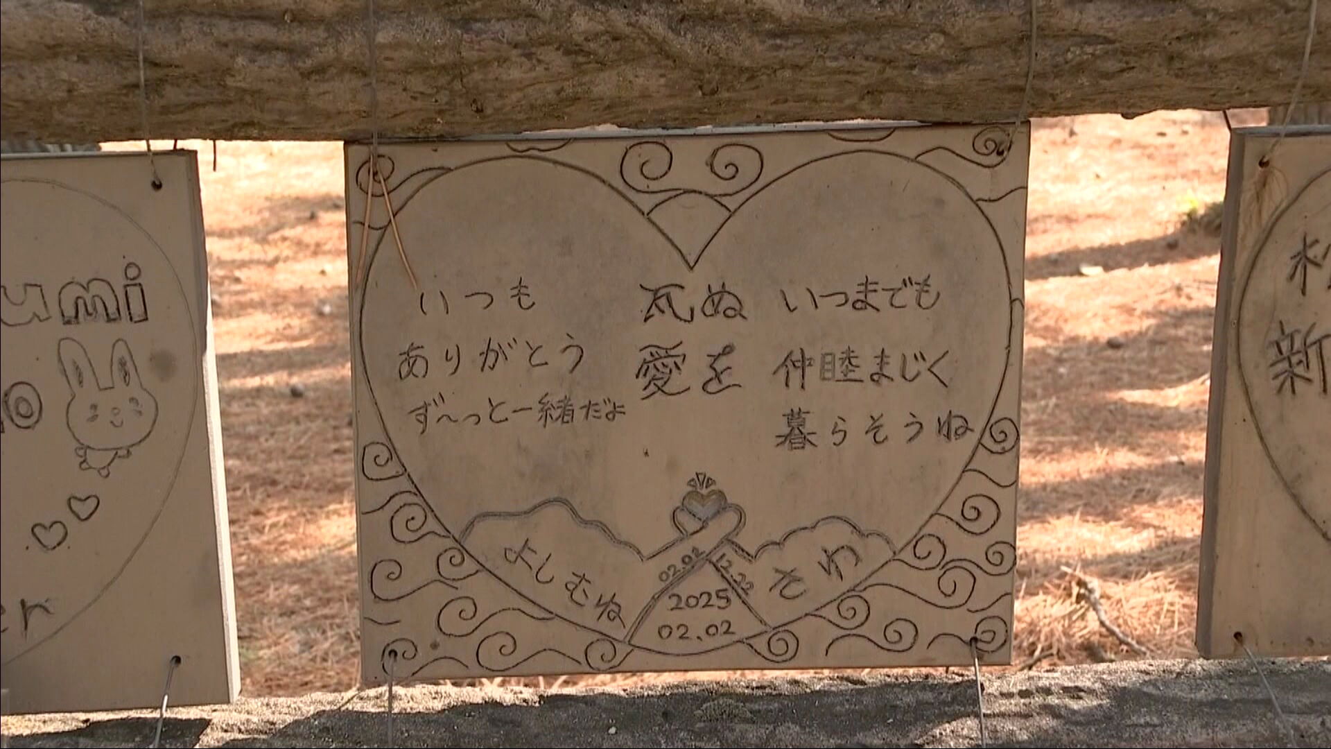 「仲良く楽しく」「変わらぬ愛を瓦に誓う」など、大切な人を思うメッセージが並びます。