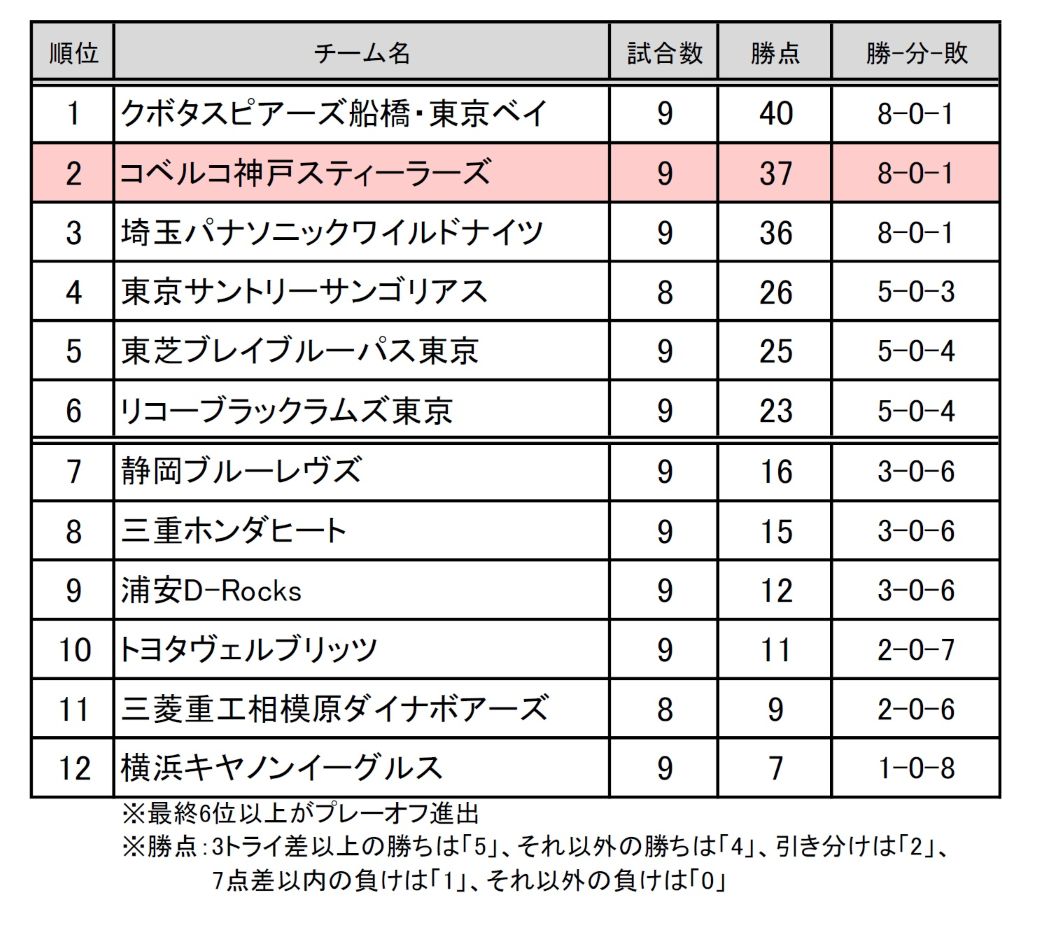 リーグワンD1 順位表