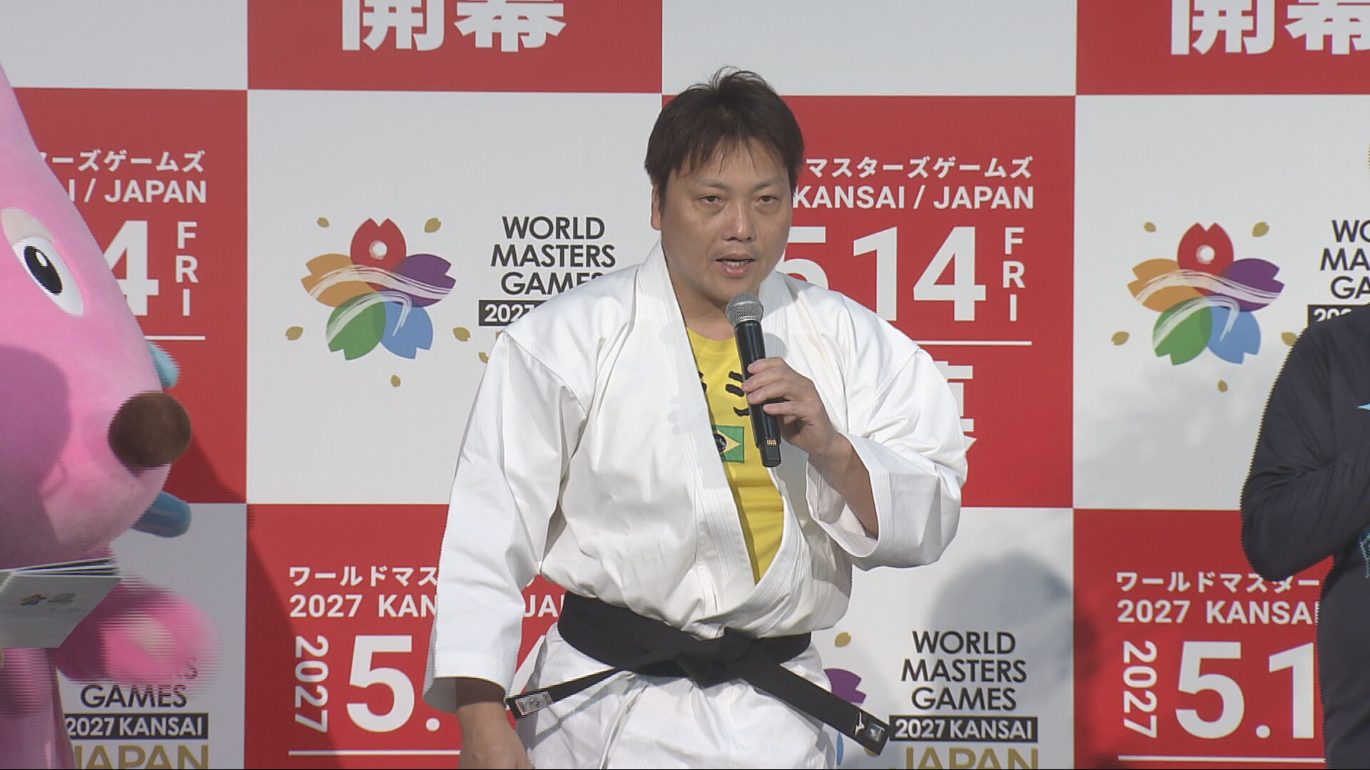 来年、関西を中心に開かれる世界最大級のスポーツの祭典、ワールドマスターズゲームズのエントリーがきょうから始まり、出場を目指すアスリートや芸人たちが意気込みを語りました。