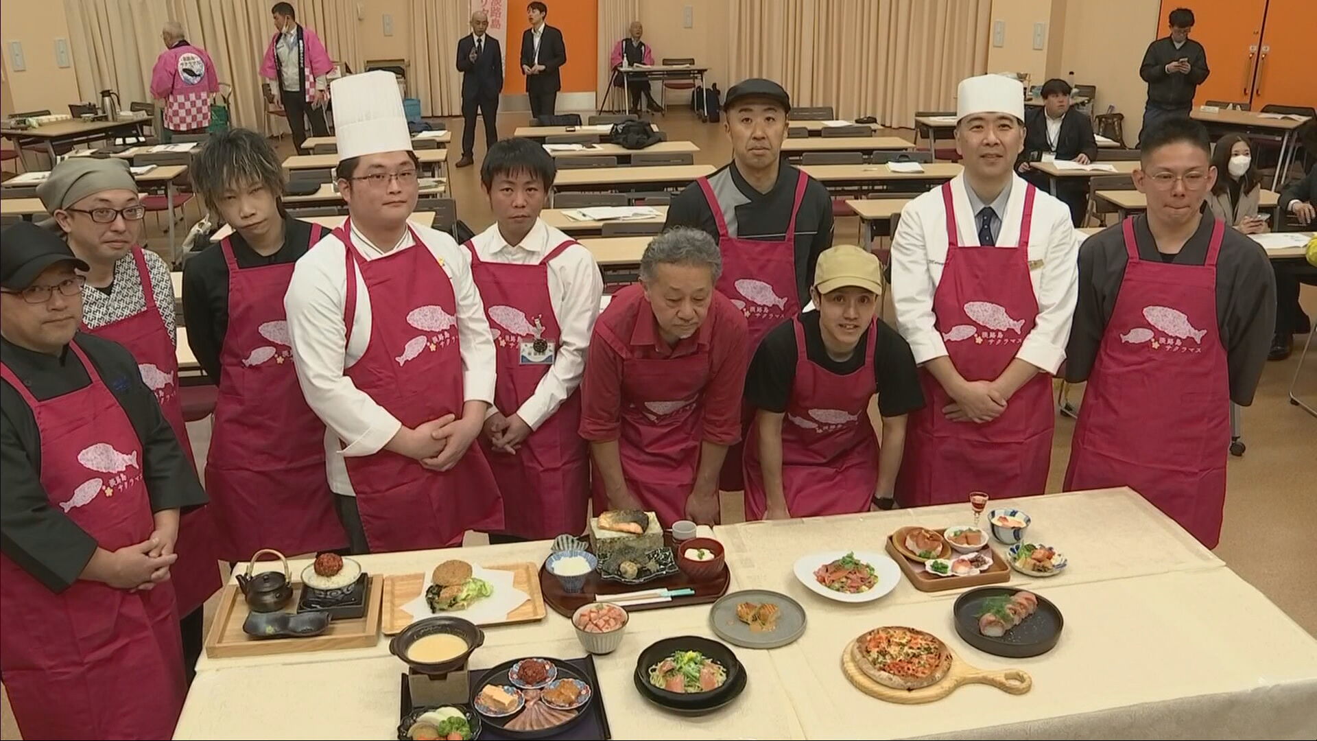 淡路島の春の味覚「淡路島サクラマス」を使った料理の販売が解禁されるのを前に、新メニューのお披露目会が開かれました。