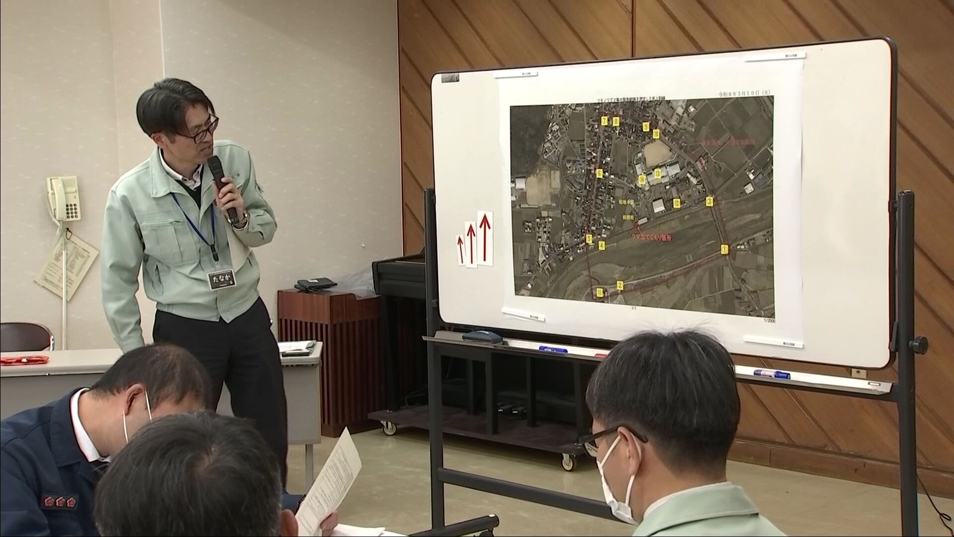 参加者は市が新たに作成した「対応マニュアル」に基づき、対策本部の設置から、緊急銃猟の伝達手段などを確認していました。