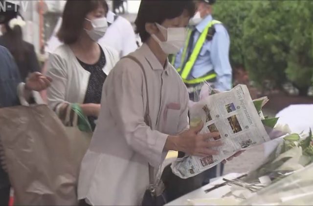 安倍元首相銃撃から一夜明け 事件現場に多くの人が献花
