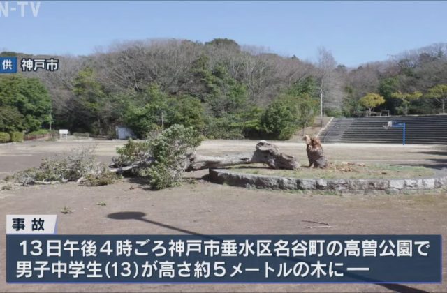 倒木の下敷きになり中学生重傷 神戸市垂水区の公園