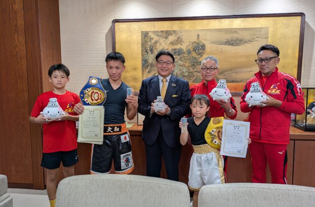 ボクシング全国大会で優勝した小学生2人が姫路市長を表敬訪問