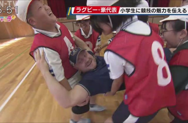 ラグビー・オーストラリア代表が小学生と交流 18日に日本代表と親善試合