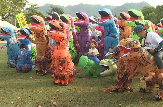 現代に蘇った恐竜が丹波を激走!全国からティラノサウルス集結