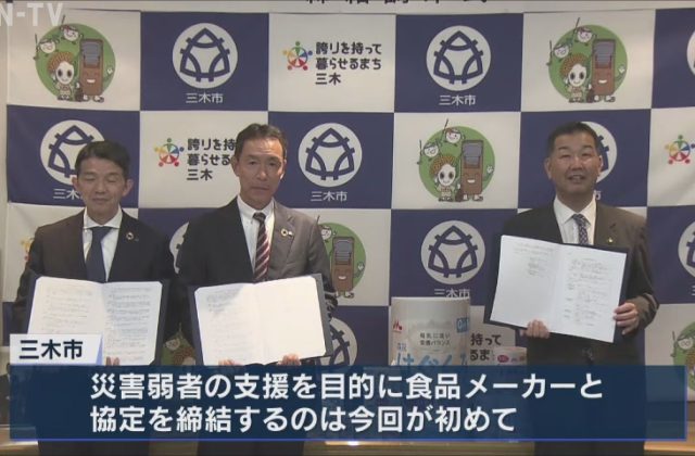 災害時に赤ちゃんや高齢者用の食料を確保 三木市と森永乳業などが協定締結
