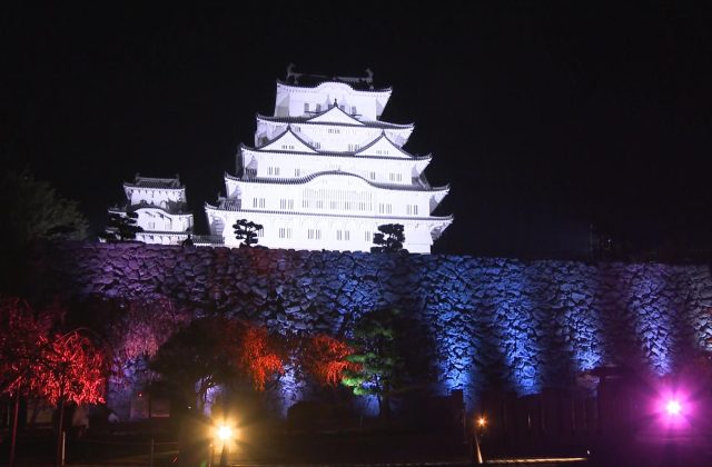 夜の姫路城 幻想的な光で彩る
