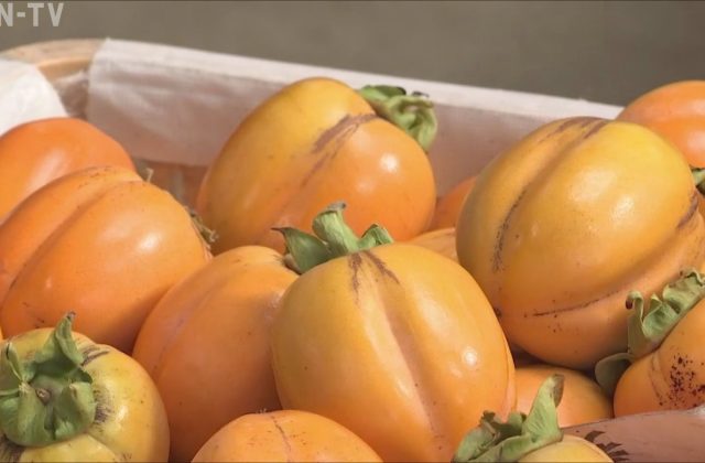 縦長で表面に4本の溝が特徴 上品な甘味「西条柿」収穫ピーク
