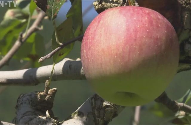 宍粟市の観光農園で旬を迎えたリンゴの収穫楽しむ