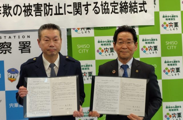 特殊詐欺被害防止へ 宍粟市と宍粟警察署が連携協定