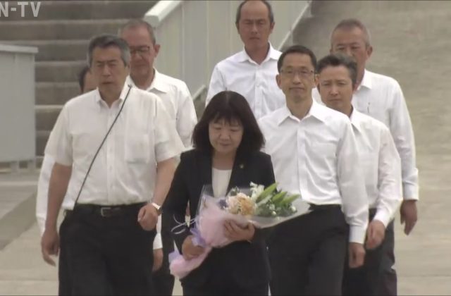 明石市丸谷市長が大蔵海岸陥没事故現場で献花 4歳女児亡くなって21年