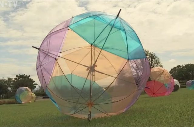 ビニール傘で作られた「あんぶれらぼーる」 国営明石海峡公園