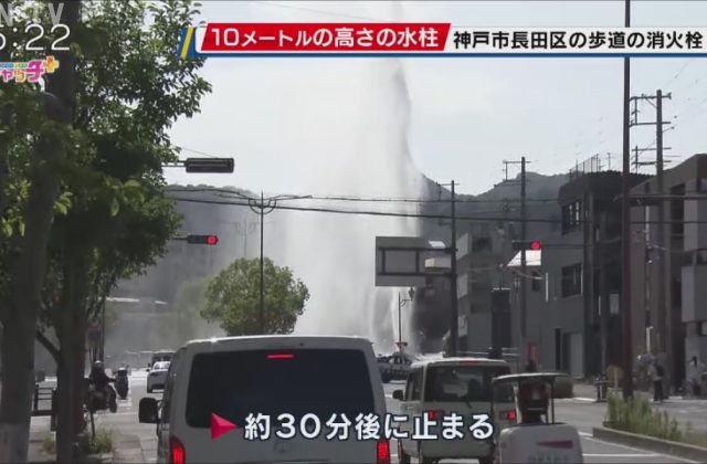 神戸市長田区の消火栓から10メートルの水柱上がる