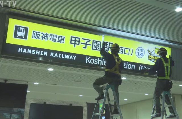 阪神電鉄甲子園駅の駅名看板が黒と黄色のタイガースカラーに 優勝記念版に衣替え