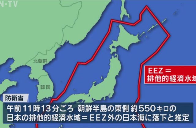 北朝鮮が弾道ミサイル発射 既にEEZ外に落下とみられる