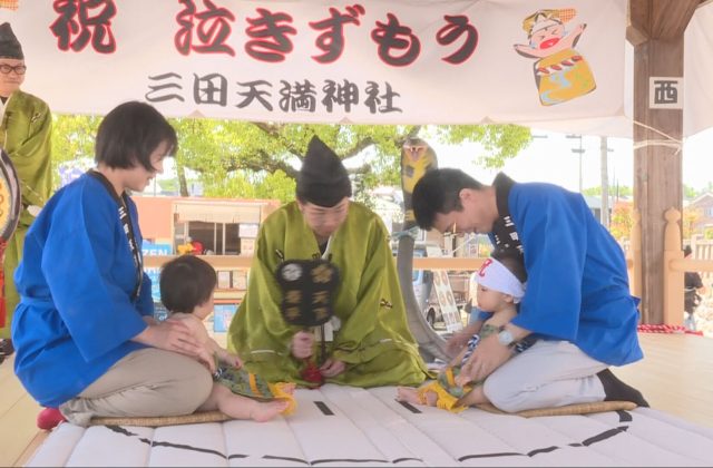 赤ちゃんたちの愛らしい「泣きずもう」 三田市の三田天満神社