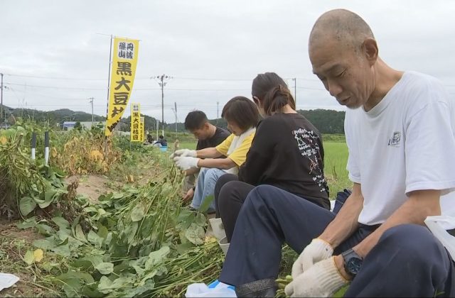 丹波篠山市で特産の「黒枝豆」収穫体験