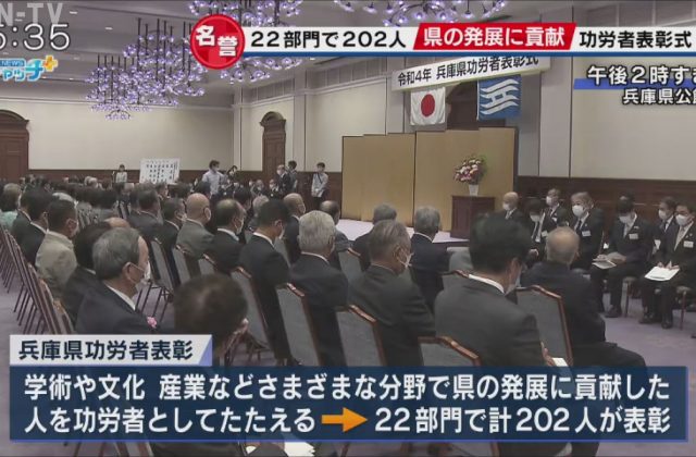 兵庫県功労賞の表彰式 県の発展に貢献した202人