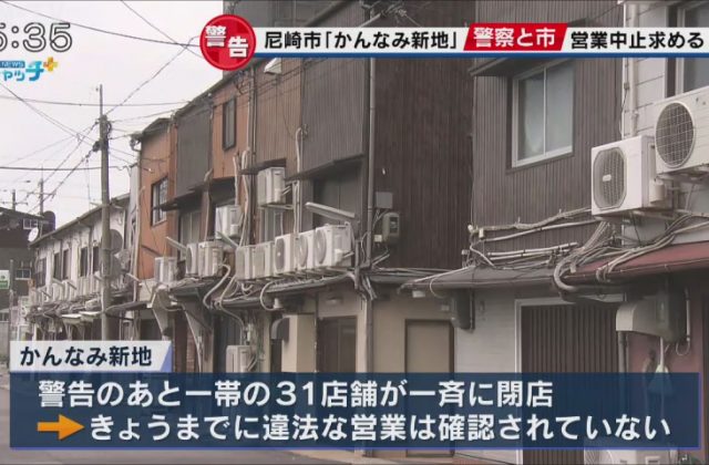 尼崎市の「かんなみ新地」に営業中止の警告
