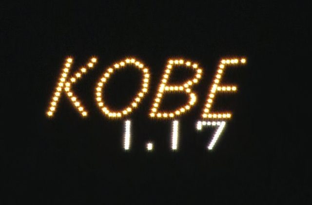 六甲山系の山麓電飾「KOBE」の下に「1.17」の明かり灯る 阪神淡路大震災28年を前に