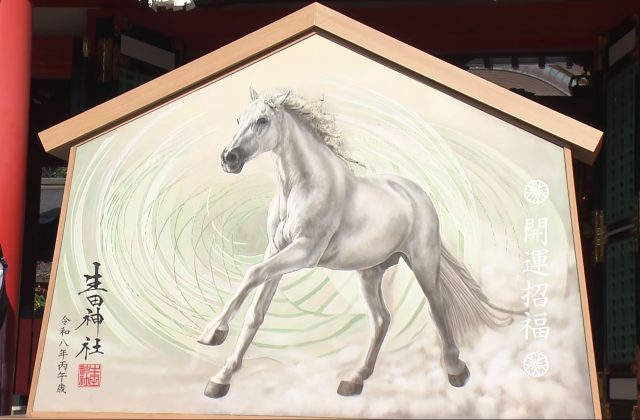 神戸の生田神社で 来年の干支「午」の大絵馬を奉納